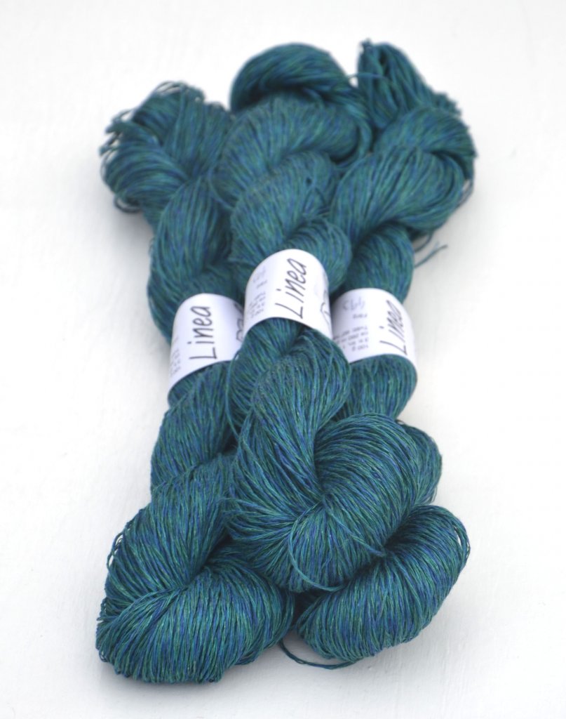 Das Moon Set Tee von Ozetta Knitwear strickst Du glatt rechts nahtlos von oben nach unten mit Nadelstärke 3,25mm (Maschenaufnahme mit 2,75mm). Bei der Passe mit sogenannten "Drop-Shoulders" strickst Du jeweils das Vorder- und Rückenteil für sich in Reihen, am Hals sorgen German short Rows (verkürzte Reihen) für eine bessere Passform. Ab den Armausschnitten geht’s dann weiter in Runden. Für die Ärmel nimmst Du am Schluss aus den Armausschnitten Maschen auf und strickst sie jeweils für sich herunter. Alle Kanten bekommen einen saubere i-cord Abschluss. Hailey’s Moon Set Tee ist gestrickt aus Pure Silk, wir haben uns dagegen hier für die Leinen-Baumwoll-Mischung "Linea" von Ullcentrum in der Farbe 487 (lila meliert) entschieden.