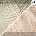 Den RibWave Sweater von Joanna Aug strickst Du nahtlos von oben nach unten mit Nadelstärke 4mm (Bündchen 3mm). Die Passe mit überzogenen Schultern strickst Du jeweils für sich in Reihen, am Hals sorgen German short Rows (verkürzte Reihen) für eine bessere Passform. Ab den Armausschnitten geht’s dann weiter in Runden. Für die Ärmel nimmst Du am Schluss aus den Armausschnitten Maschen auf und strickst sie jeweils für sich herunter. Joanna’s Bluse ist gestrickt aus Merino in der Farbe cloud / sky zusammen mit Soft Silk Mohair soft rose / pudderrosa. Das Merinogarn von Knitting for Olive ist selbstverständlich mulesingfrei und wird in Kombination mit Soft Silk Mohair von Knitting for Olive leicht flauschig und herrlich leicht. Beide Garne sind ökotex zertifiziert.